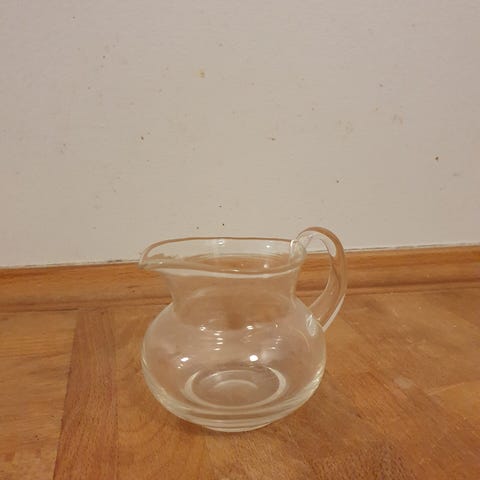 Lille kande i glas.H 6,5 cm, B 8 cm, D 6 cm.Flot og velholdt, uden skår eller revner. Gå til varen, for flere billeder.