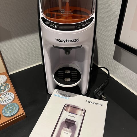 Sælger denne smarte Baby Brezza, som automatisk blander og opvarmer modermælkserstatning til den ønskede temperatur og mængde – hurtigt og nemt. Perfekt til natteflasker og en travl hverdag.