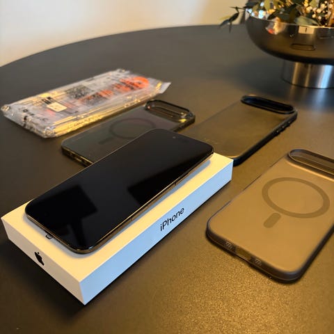 Apple iPhone Air i light gold. Den kommer med 256 GB intern hukommelse. Den er i perfekt stand og batteri tilstand er 100% kvittering, kasse og mange forskellige covers følger med. Bytter gerne med en blå iPhone 17 (ikke pro) min telefon er købt kontant hos www.proshop.dk