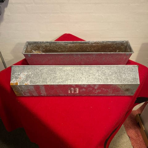 Rektangulær plantekasse/altankasse i galvaniseret metal.