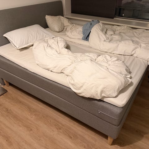 Fin sengeramme og elevation som virker upåklageligt. Hvis der ønskes nye madrasser, kan man blot skifte de gamle ud.