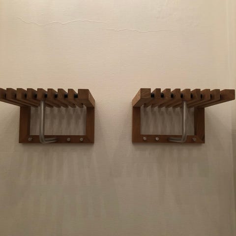 Massiv egetræ med 5 knager. På hylden placeres de to praktiske Cutter kasser til fx til handsker og huer.