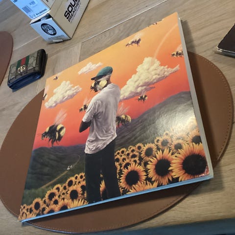 Tyler, The Creator Igor lp med pink cover. Vinylplade i standard lp-størrelse med trykt omslag i lyserøde nuancer og portrætbilleder på for- og bagside. Egnet til afspilning på almindelig pladespiller og til opbevaring i vinylsamling.