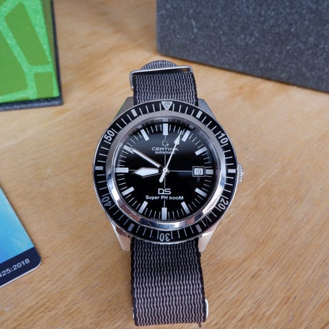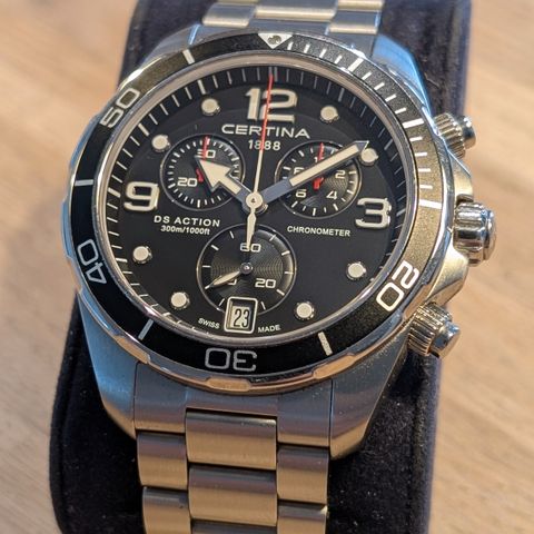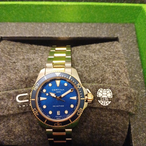 Lækker dykker fra Certina som kun er få måneder gammelt. Uret står nærmest som ny nærmest ny udover mindre brugsspor på låsen. Det er fuldsæt og kommer med garantikort stemplet august 2025. Virkelig en lækker ur der sidder godt på håndleddet og skal opleves.