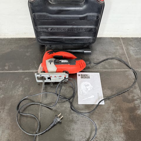 Black & Decker CD300 elektrisk stiksav med 370W motor. El-drevet model til lige og kurvede snit i materialer som træ og lignende byggematerialer. Leveres med ledning og bundplade til føring langs emnet. Velegnet til gør-det-selv-opgaver i hjemmet og mindre byggeprojekter.