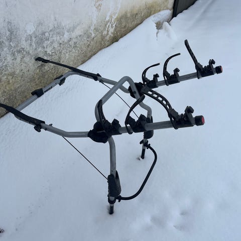 Thule ClipOn cykelholder til bagklap. Model til montering på bilens bagklap med justerbar aluminiumsramme og polstrede holdere til cyklerne. Medfølgende remme og kroge til fastgørelse på bilen samt nummerpladeholder. Leveres med instruktionsmanual til korrekt montering og brug.