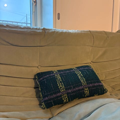 Sælger en Normann Copenhagen pyntepude med ternet mønster i lyse og mørke nuancer. Str. 40x40cm.