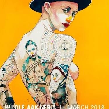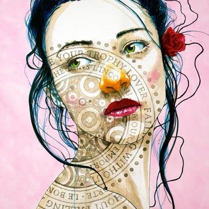 Plakat kunsttryk kvindeportræt med blomster motiver