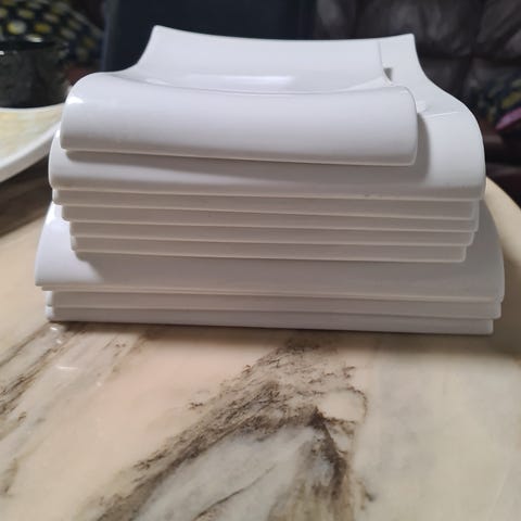 Rosendahl vase, 12 store flade tallerkener, 3 mindre tallerkener, 1 skål, kopper mm.