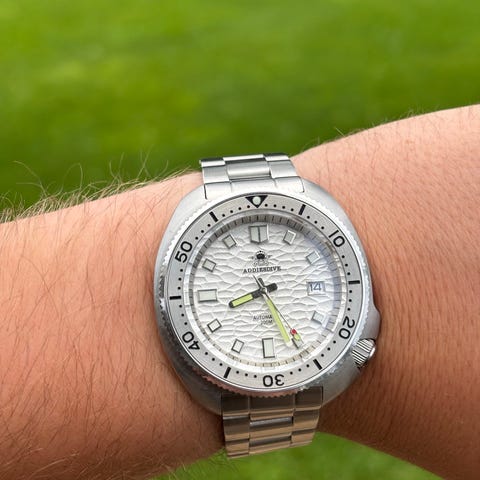 - Urværk: Seiko VH31 (Kendt for sin fejende sekundviser, der tikker 4 gange i sekundet, kombinerer den overkommelige pris og nøjagtighed ved kvarts med den visuelle appel af en automatisk urværk)