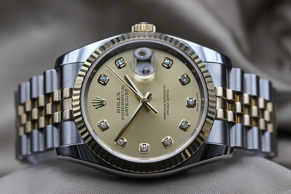Uret breder sig over 36mm og er i fabriksny stand. Du finder at der stadig er påsiddende fuldt fabriks plastik på kassen samt en smule inde i claspen.
