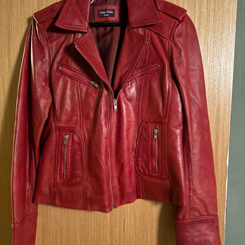 Læderjakke fra Schott nyc i rød med masser af fede detaljer. Nypris 4000,-
