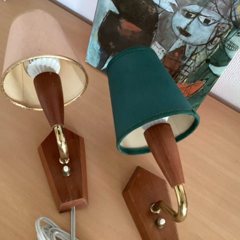 2 TEAK RETRO VÆGLAMPER, brugt men i fin stand.,,,,