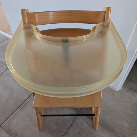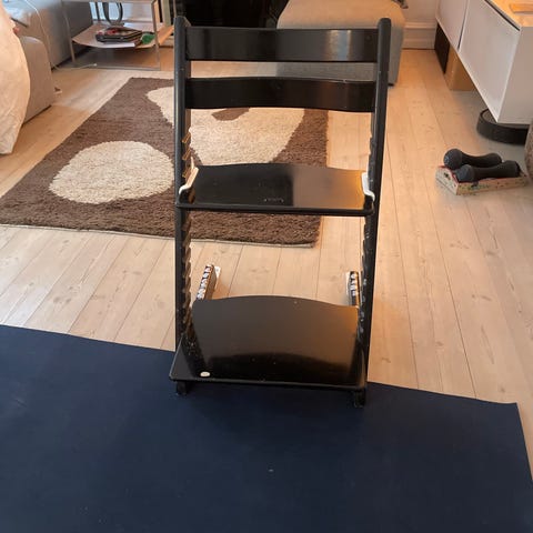 Stokke børnestol i træ med justerbar siddeplade og fodplade. Stolen har en løs hynde med traktormotiv i grønne nuancer, som giver ekstra siddekomfort. Egnet som spise- og aktivitetsstol til børn ved bordhøjde. Klassisk højstolsdesign, hvor sæde og fodplade kan flyttes i højden efter barnets størrelse.