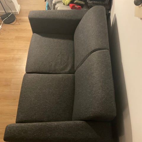 Samme model som på billedet dog i farven lysegrå. Sofaen er delt, men kan nemt sættes på plads og alle dele medfølger i intakt stand.