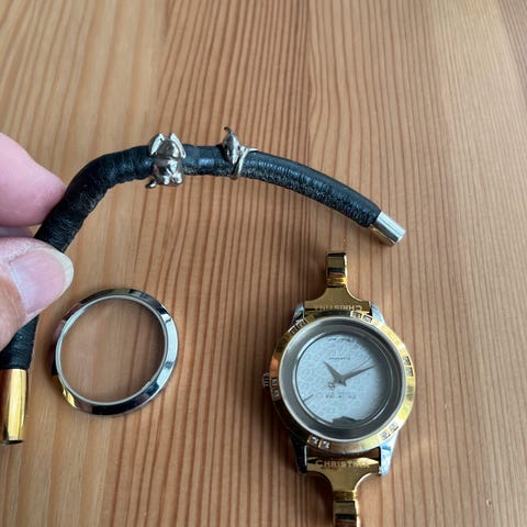 Andet, Christina Design London, Swiss dame urværk, quartz, tror den virker men ikke sikker da jeg ikke har batteri størelsen, sten er taget til et andet projekt, sælges som det er, sælges for kun 100kr, kan også sendes med posten for +50kr