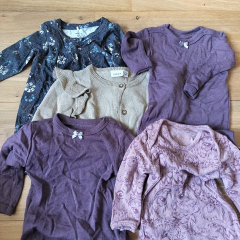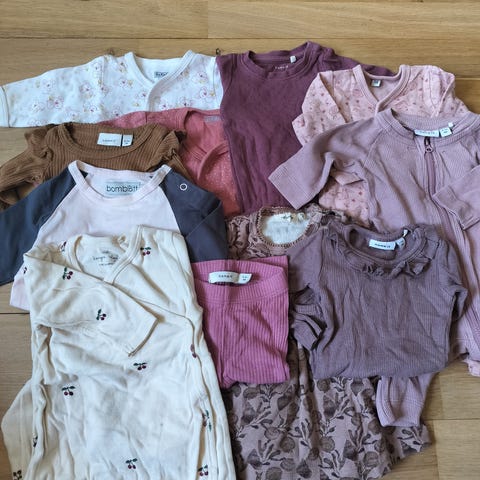 Vi sælger alt det, du kunne drømme om til en pige. Fra størrelse 50 til 74 og noget i 0-1 år i mærkerne: Lil Atelier, Petit Piao, Next, Name It, Joha, Dilling, Lalaby, H&M, ZARA, Wheat, byhappyme, Petit Crabe (Uv dragt), Hummel. Der er uld og bomuldstøjs for minimum 10.000 kr. i de tre poser. Tøjet er kun blevet vasket i parfumefri vaskemiddel og kommer fra et røg- og dyrefrit hjem.