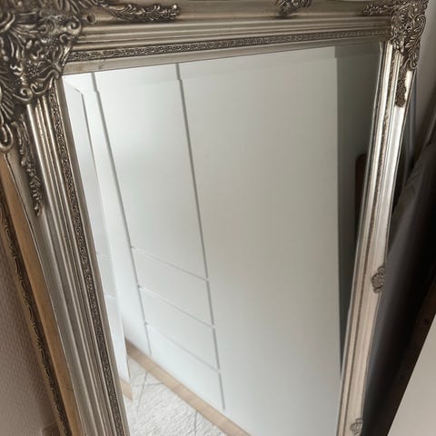 Spejl i antik look med sølv ramme.