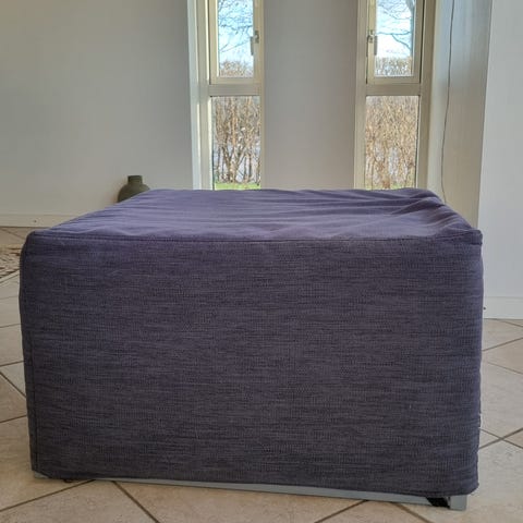 BoConcept gæsteseng fold-ud med madras. Sengen er udformet som en kvadratisk puf, der kan foldes ud til en liggeflade. Den har metalstel og polstret madras med BoConcept-logo. Velegnet som ekstra soveplads i stue, gæsteværelse eller andre rum, hvor der er behov for en sammenklappelig seng, der kan fungere som siddepuf, når den er slået sammen.