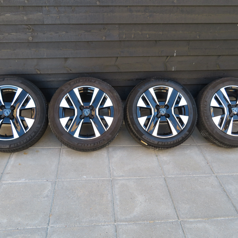 4 stk. Originale Peugeot E 208 Alufælge 16" 4x108 ET 32 med 195 55 16 91T Michelin alpine 7 vinterdæk 95% mønster. Er afbalanceret.
