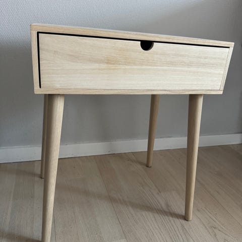 Thais natborde i træ og hvid, skuffer 4 stk multifarvet, ben fyrretræ klar lak L:36 B:30 H:59 cm.