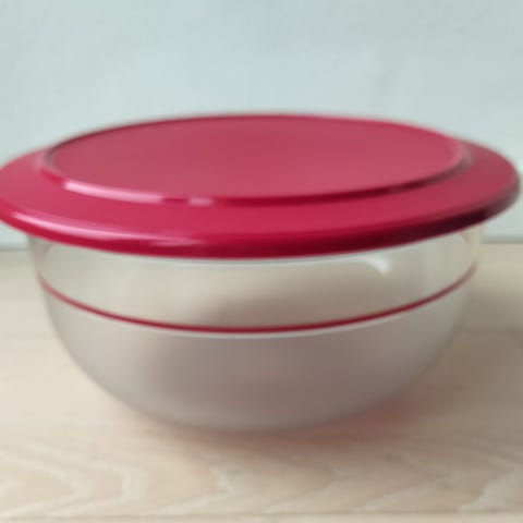 Tupperware Avanti 4,3 l. skål med låg i den flotte blå farve.