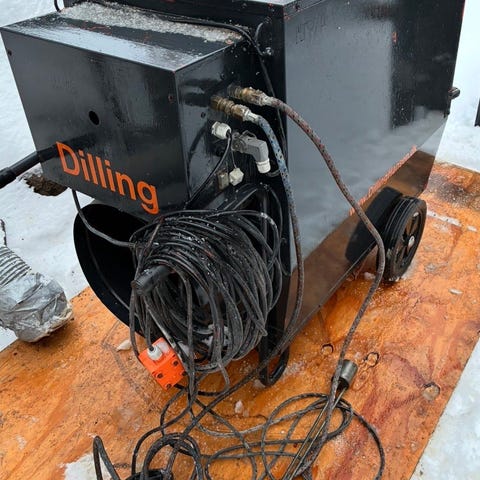 Master Climate Solutions dieselvarmekanon i gul farve. Enheden er beregnet til opvarmning af større rum som værksteder, haller eller byggepladser. Den kører på diesel og har betjeningspanel med regulering på siden samt bærehåndtag på toppen for lettere transport. Varmekanonen er egnet til midlertidig eller supplerende opvarmning, hvor der er behov for kraftig, retningsbestemt varme.