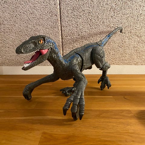 Dinosaur der kan gå, men lys og lydeffekter, når man trykker eller sætter de forskellige tappe i.