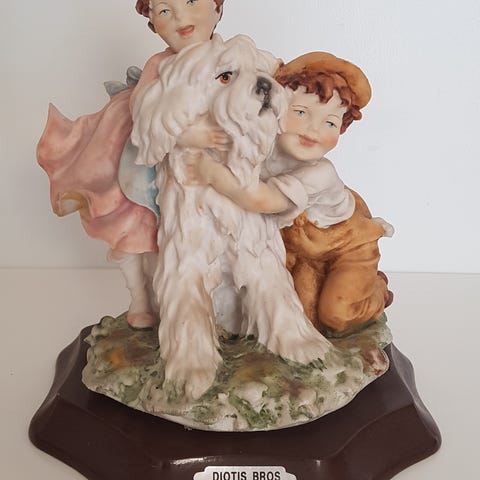 Græsk håndlavet kunsthåndværk ifa meget smuk statuette af poleret alabast. Vi købte figuren for ca 30 år siden på Kreta, hvor vi besøgte et værksted, hvor vi så stenhuggere og kunstnere i arbejde, og så hvordan de smukke figurer så småt begyndte at træde frem at de rå marmor/alabast blokke. Et Imponerende, langsommeligt og tålmodighedskrævende arbejde. Figuren er i fineste stand og måler ca 35 cm i højden. Den er signeret med kunstnerens navn og der er indhugget “Made in Greece - Knossus samt med græske bogstaver “Dionysos”. Guden for vin og fest.. kr 1398,-
