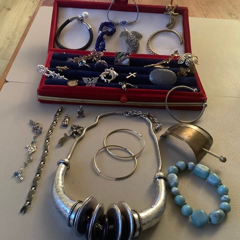 Alt på billedet minus smykkeæske sælges. Kan afhentes eller sendes med gls.