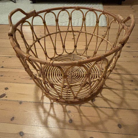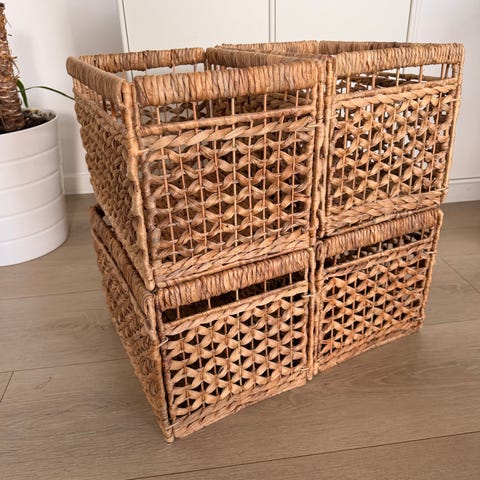 kurv med stofforing. Rektangulær fletkurv i lys flet med aftagelig, lys stofpose/foring. Velegnet til opbevaring af legetøj, tøj eller andre mindre genstande på børneværelset eller i hjemmet generelt.