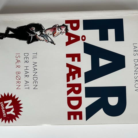 Lars Daneskov Far på færde bog. Illustreret humoristisk bog om livet som far og familieliv, med tegninger og tekst i et letlæseligt format. Velegnet som underholdende læsning for voksne, særligt forældre og kommende forældre.