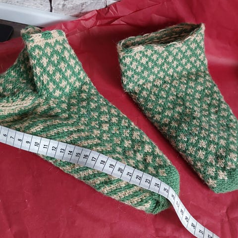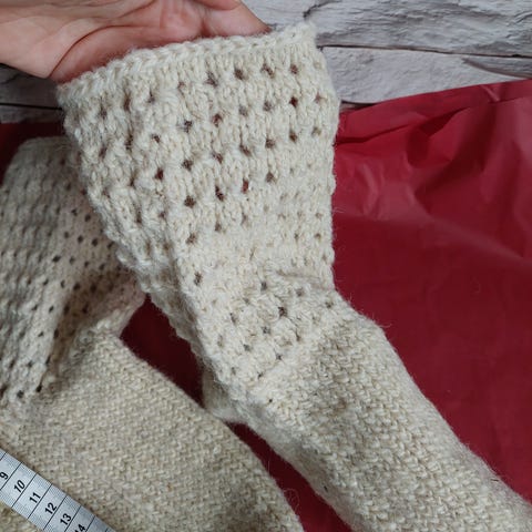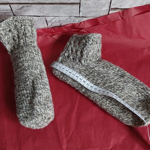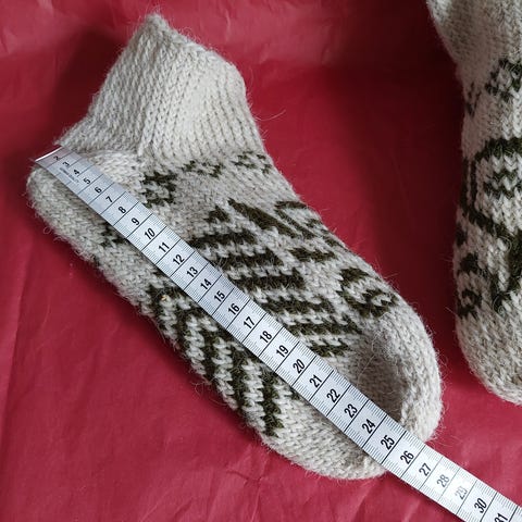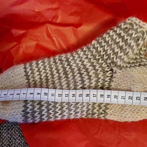 Hjemmelavet / håndlavet / hjemmestrikket tykke sokker / hjemmesko / hjemmesokker i 100 % uld. Fra røgfrit og dyrefrit hjem. Passer langt de fleste størrelser, da de kan udvide sig.