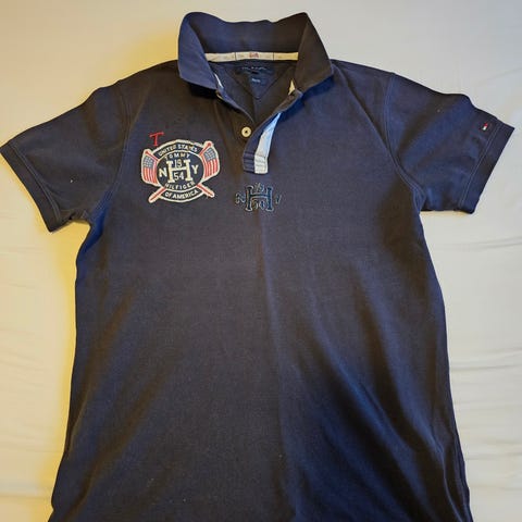 Tommy Hilfiger langærmet polo blå bomuld herre str. L