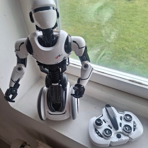 En fjernstyret robot som styres meden controller og en læringsrobot som stiller spørgsmål på dansk og man skal så besvare ved at trykke på tasterne på robotten.