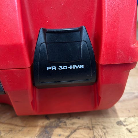 Hilti laser leveres i original rød plastkuffert med formstøbt indsats til laseren og tilbehør. I kufferten ses selve laseren samt strømledning og enkelte løse dele/tilbehør. Velegnet til montage- og byggeopgaver,