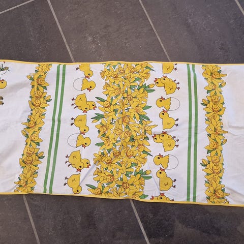 Skøn retro påskebordløber, måler 86*28 cm ( den hænger dobbelt på billedet) .