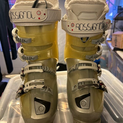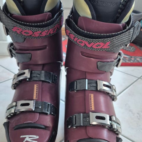 Rossignol alpin ski støvler i sølv og blå. Modellen har justerbare spænder og snøresystem på fronten for at give en stabil pasform om foden. Inderstøvlen er polstret for komfort og støtte. Farvekombination i sølv, blå og enkelte orange detaljer på sålen.