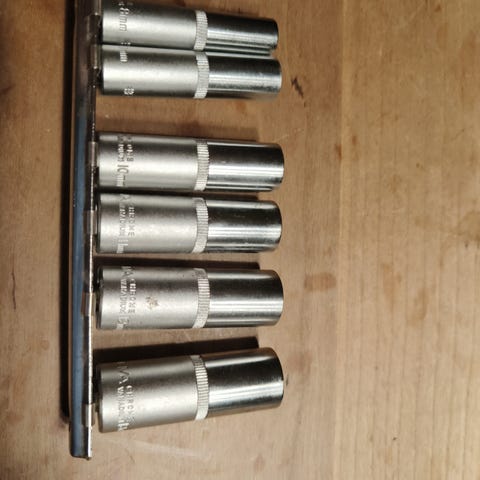 Sockets for 1/4" drive, from 4 to 13 mm and extender. Additional imperial system sockets
