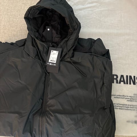 Stilet premium regnjakke fra Rains. Helt ny med prismærke. Normalpris 1899. Se mere info på nettet ved at søge på titlen :-)