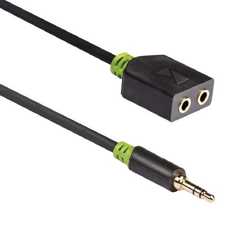 Sælger denne praktiske lyd-splitter. Den gør det muligt at tilslutte to sæt hovedtelefoner til den samme telefon, tablet eller computer på én gang. Oplagt til flyrejsen, togturen eller bare hygge i sofaen.