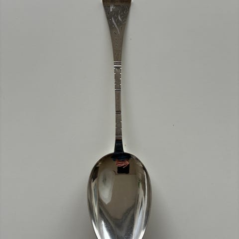 Totårnet sølv potageske med mønster på skaftet