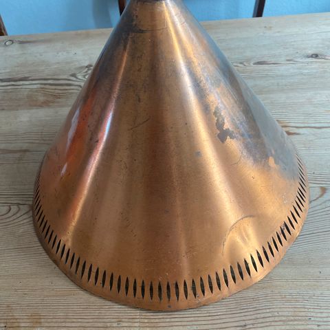 Anden loftslampe, Kobber pendel gammel med kobber ophæng. Dia 22 cm og højde incl loftsophæng 76 cm, kan sendes