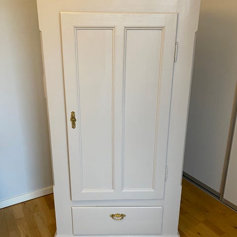 Smukke karlekammerskab med et vintage look. Kan rumme en hel del tøj med alle dens hylder og skuffe.