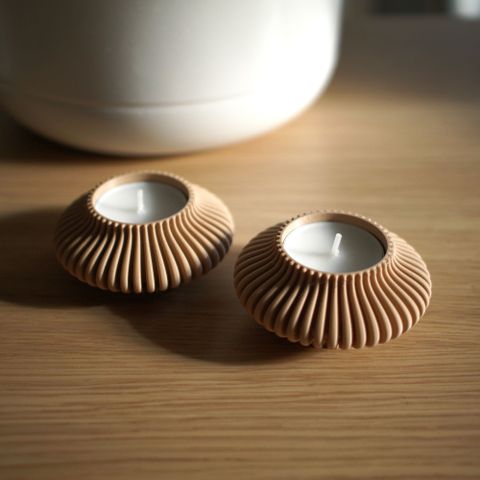 To fine fyrfadsstager i to forskellige størrelser. Når det er mørkt danner de et fint mønster. Kan også bruges som en potteskjuler til en lille plante.