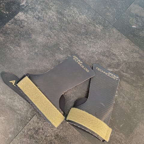 Rogue Fitness Roogrips. HELT NYE OG UBRUGT. Størrelse S (small). Roogrips træningsgrips i brunt læder med to fingerhuller og justerbar håndledsrem. Gripsene er designet til brug ved styrketræning, crossfit og andre træningsformer, hvor der er behov for ekstra greb og beskyttelse af hænderne. Lædermaterialet giver et tæt fit om hånden og kan hjælpe med at reducere friktion mod stangen. Leveres i gennemsigtig opbevaringspose. Størrelse Small betyder at den passer dig, hvis der på din hånd er mindre en 10 cm fra dit håndled til bunden af din langfinger.