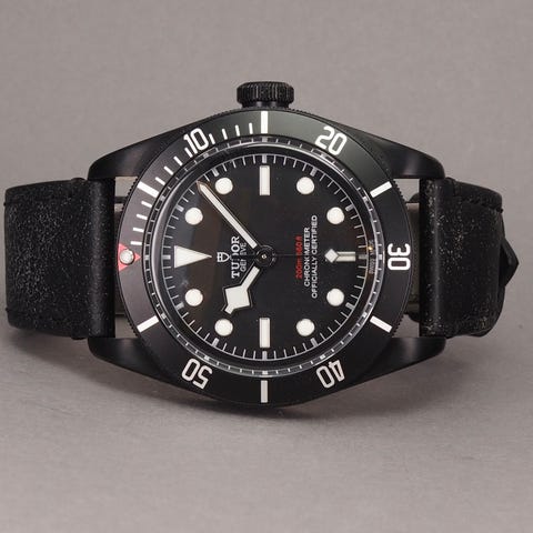 Sælger her det ikoniske Tudor Heritage Black Bay med den karakteristiske bordeauxrøde lynette.