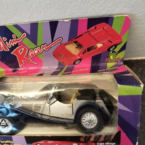 Fjernstyret mini racerbil med tilhørende controller. Bilen er i lille skala og udformet som en racerbil. Leveres i en cylindrisk beholder, der kan bruges til opbevaring. Egnet som legetøj til børn eller som samlerobjekt for små fjernstyrede biler.