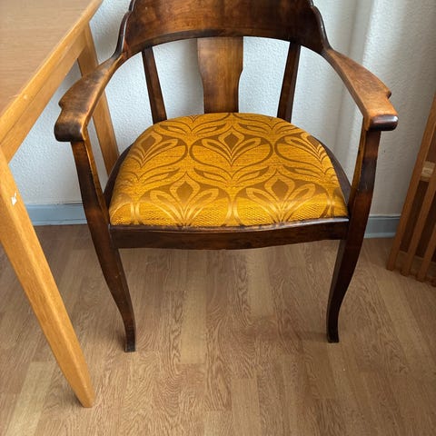 Helt unik lækker stol i smukt design, fine farver og beklædt med intakt matchende møbelstof.