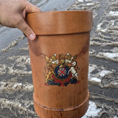Rigtig sjov og fin vintage paraplyholder i læder.